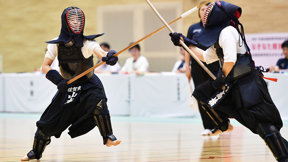 気迫のこもったかけ声と共に、長柄を振り下ろす。狙う先は相手のメン。鋭い音が鳴り響くと、審判の旗が一斉に上がった。強豪・南陽(京都)と迎えた全国総体決勝。佐賀東高校の山本羽凰選手が中堅で2本を奪うと、これが決勝点となりチームは16年ぶりの優勝を果たした。「決勝トーナメントからはどの試合も100%を出せた」と山本選手。目標に掲げた全国制覇を成し遂げ、「忘れられない思い出になった」と振り返る。
