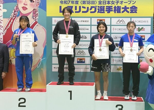 レスリング全日本女子オープン 鳥栖工業高校・小柴ゆり 3位 シニアの部59キロ級 2025.10.12 第18回全日本女子オープンレスリング選手権大会が11、12の両日、静岡県の焼津市総合体育館で開かれた。佐賀県勢は、シニアの部59キロ級に出場した小柴ゆり(鳥栖工高)が3位に入った。(丸山美陽) 第18回全日本女子オープンレスリング選手権大会シニアの部59キロ級で3位に入った鳥栖工高の小柴ゆり(右から2番目)=静岡県焼津市