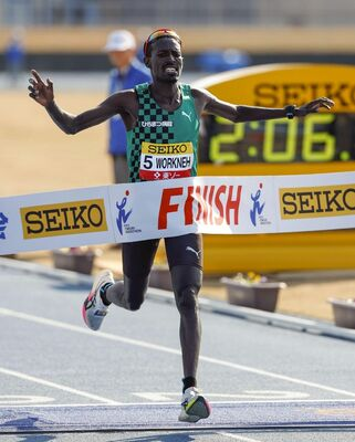 同日開催された福岡国際マラソンを制したバイエリン・イエグゾーらと、母国エチオピアで3カ月間トレーニングを重ねて本番に臨んだ。スタートから軽快にピッチを刻むと、37キロ過ぎにロングスパート。「エチオピアの標高3000メートルくらいのところでしっかりトレーニングしてきたから、最後まで体が軽かった」と、ぐんぐんスピードを上げ、最後はロンドン五輪1万メートルのケニア代表カロキ(トヨタ自動車)との一騎打ちを制した。